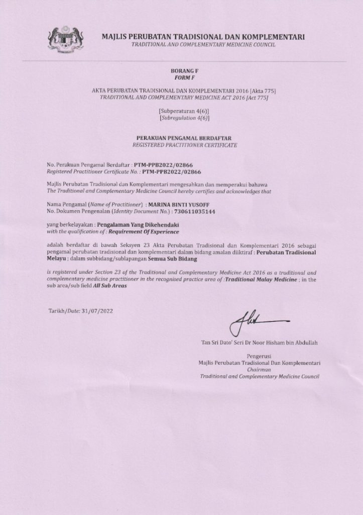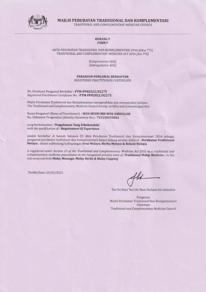Rawatan dijalankan oleh pengamal berpengalaman dan berdaftar dengan KKM.